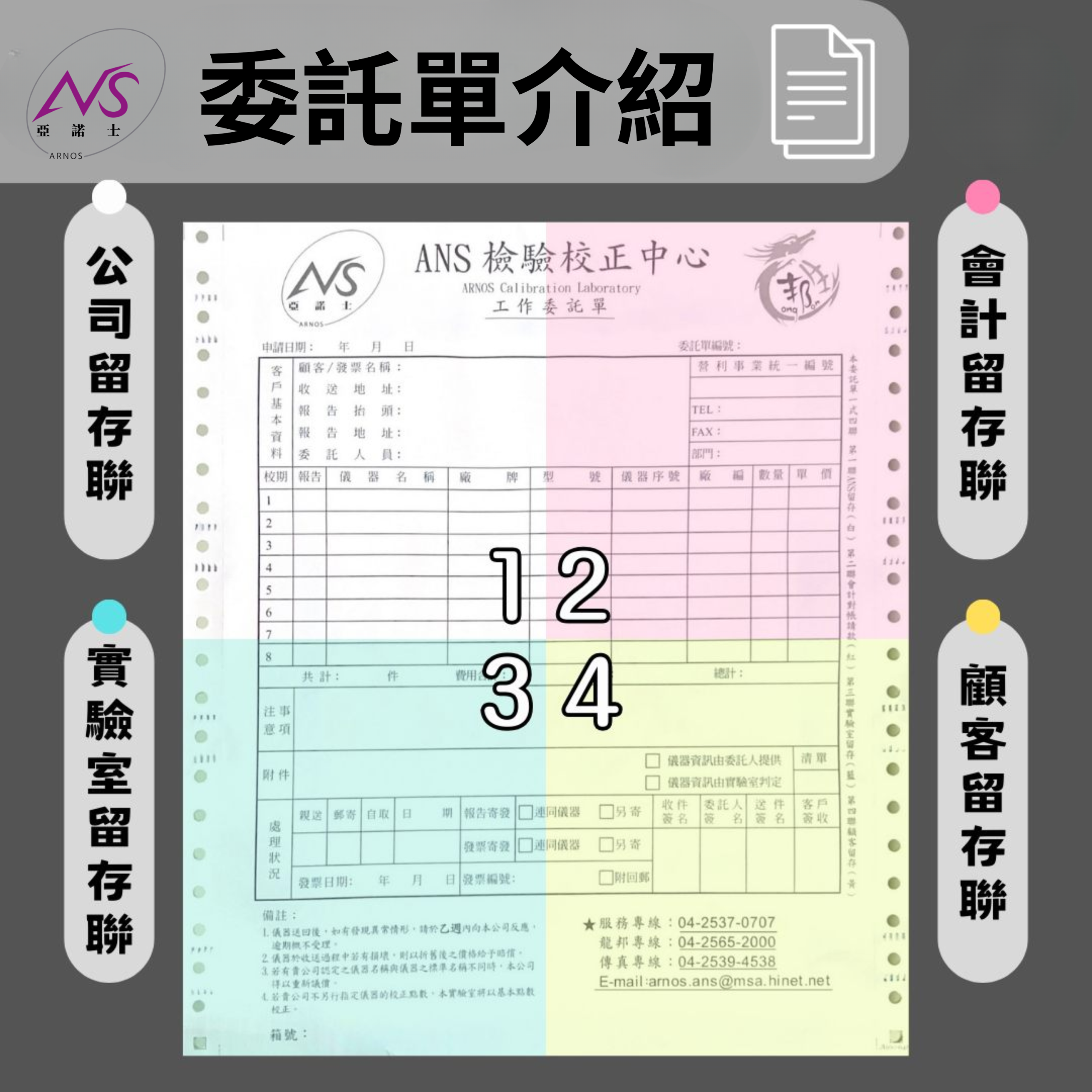 • 第三聯(藍):實驗室留存聯